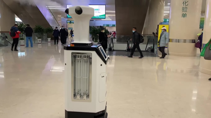消毒機器人什么場合作用大,大型公共場所使用消毒機器人進行消毒