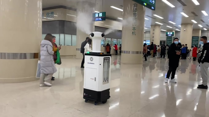 消毒機器人什么場合作用大,大型公共場所使用消毒機器人進行消毒