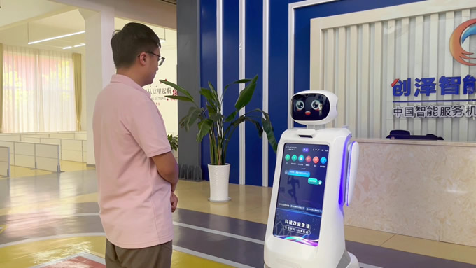 創澤智能消毒機器人和智能大屏機器人等多款機器人亮相蘭洽會,彰顯了創澤AI技術實力與場景深耕能力