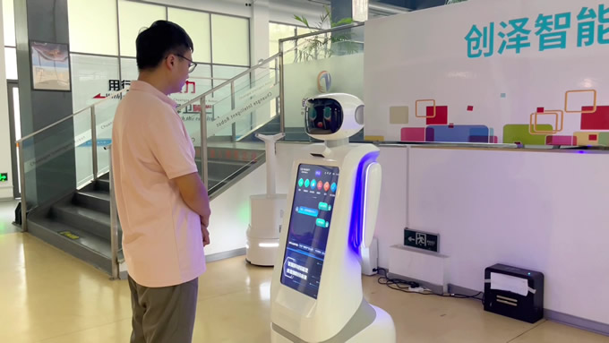 創澤智能消毒機器人和智能大屏機器人等多款機器人亮相蘭洽會,彰顯了創澤AI技術實力與場景深耕能力