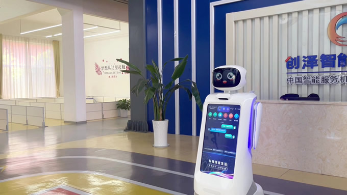 創澤智能消毒機器人和智能大屏機器人等多款機器人亮相蘭洽會,彰顯了創澤AI技術實力與場景深耕能力