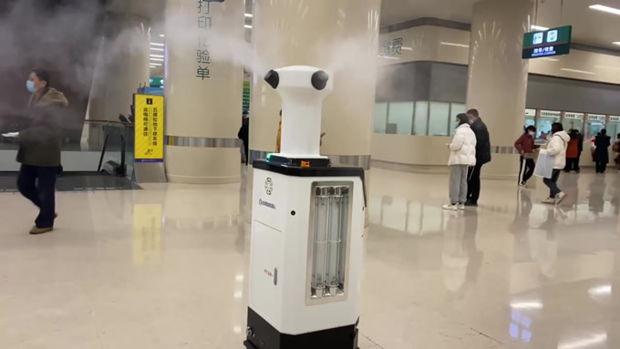 消毒機器人什么場合作用大,大型公共場所使用消毒機器人進行消毒