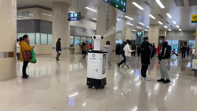 消毒機器人什么場合作用大,大型公共場所使用消毒機器人進行消毒