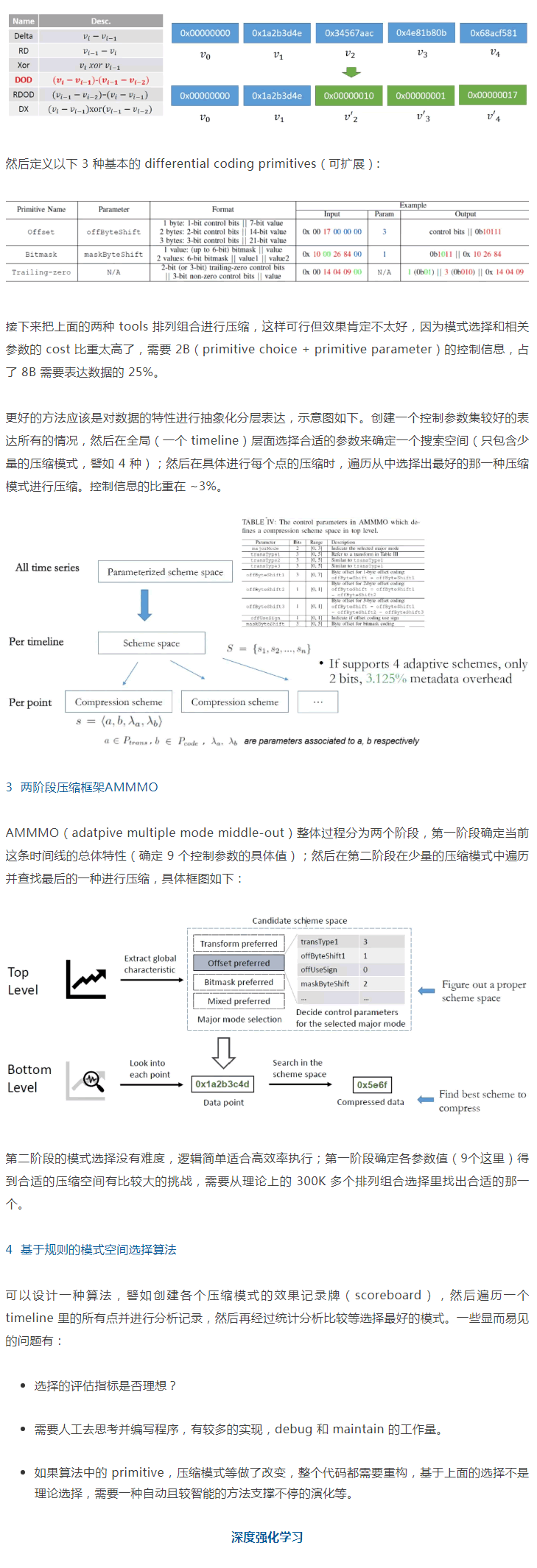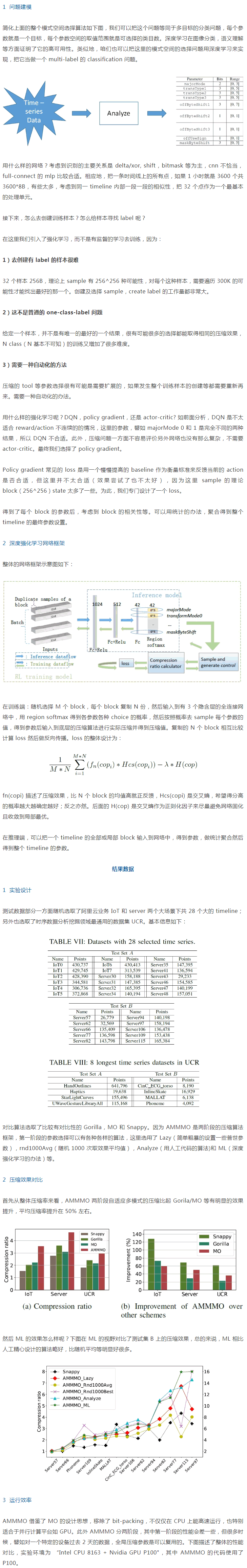 深度學習的本質是做決策,用它解決具體的問題時很重要的是找到契合點,合理建模,然后整理數據優化 loss 等終較好地解決問題。在過去的一段時間,我們在用深度強化學習進行數據壓縮上做了一些研究探索并取得了一些成績,已經在 ICDE 2020 research track 發表(Two-level Data Compression using Machine Learning in Time Series Database)并做了口頭匯報。在這里做一個整體粗略介紹,希望對其它的場景,至少是其它數據的壓縮等,帶來一點借鑒作用。