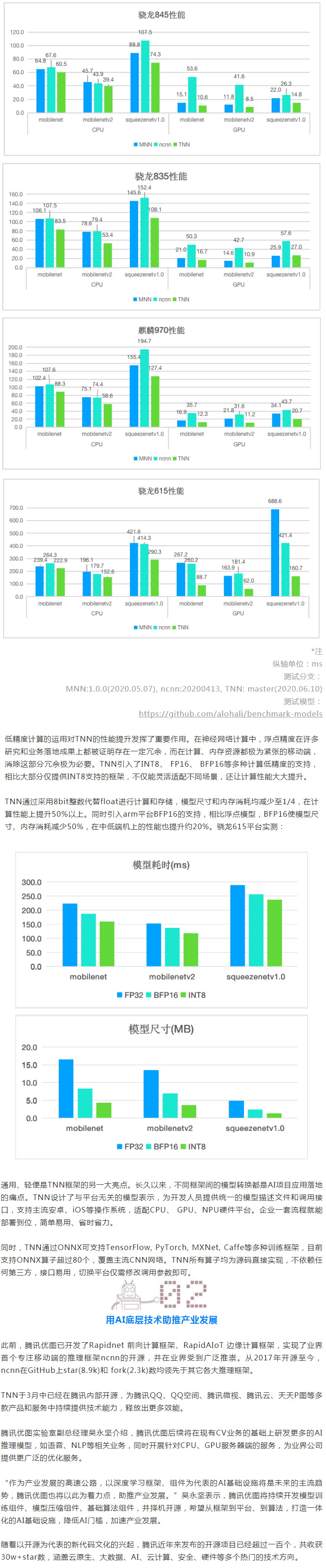 6月10日,騰訊優(yōu)圖實(shí)驗(yàn)室宣布正式開源新一代移動(dòng)端深度學(xué)習(xí)推理框架TNN,通過底層技術(shù)優(yōu)化實(shí)現(xiàn)在多個(gè)不同平臺(tái)的輕量部署落地,性能優(yōu)異、簡單易用。騰訊方面稱,基于TNN,開發(fā)者能夠輕松將深度學(xué)習(xí)算法移植到手機(jī)端G效的執(zhí)行,開發(fā)出人工智能 App,真正將 AI 帶到指尖。