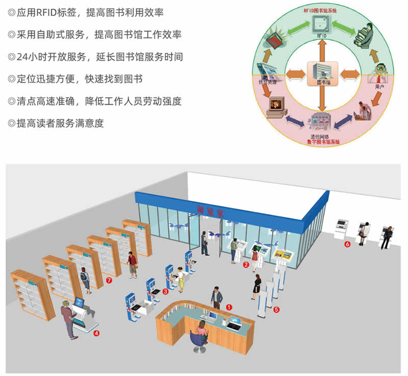 對于一個現代化管理的圖書館來說,從某種意義上講,如何減少人員的浪費,如何提G效率、 是G服務水平是個有待解決的問題。因此,如何結合的計算機及相關應用技術,幫助圖書館改善現狀,提G圖書館的智能化管理,成為國內外圖書館關注的一個焦點問題。目前,創澤RFID系統可以解決以上圖書館所面臨的問題,既可以讓圖書館工作人員更輕松的進行盤點、歸架、順架工作,減少他們的工作強度,增加工作效率的同時,又可以讓讀者更輕松快速的完成借閱,同時還具備出色的防盜功能,更有效的減少圖書館的失竊率。