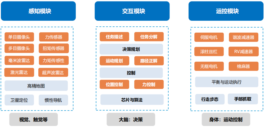 人形機器人構(gòu)成:三大模塊,軟件與硬件交互