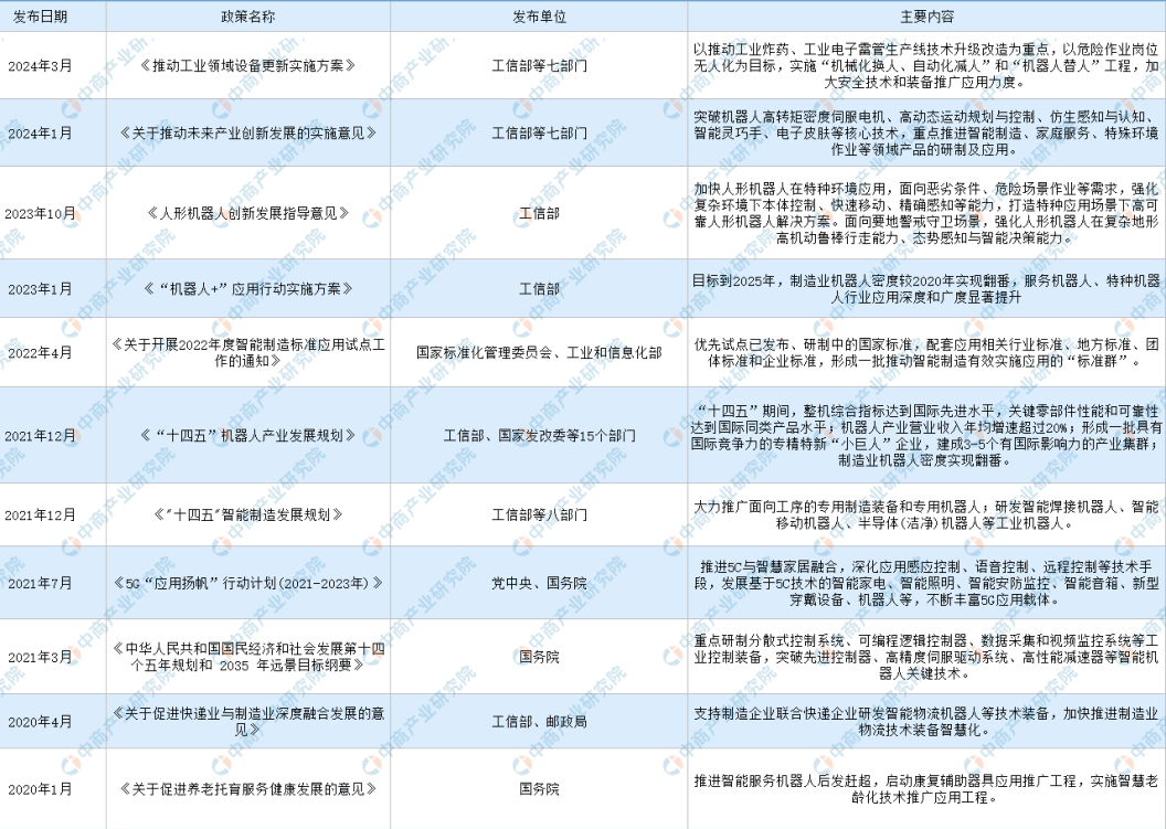 協作機器人行業屬于G端裝備制造業,屬于國家戰略性新興產業,是國家從制造業大國發展成為制造業強國的重要抓手。近年來,政府持續加大力度支持機器人行業的發展,出臺了《人形機器人創新發展指導意見》《“機器人+”應用行動實施方案》《“十四五”機器人產業發展規劃》《"十四五"智能制造發展規劃》等政策。國家政策的出臺和落地為協作機器人行業穩健G質量發展營造了良好的生存環境。
