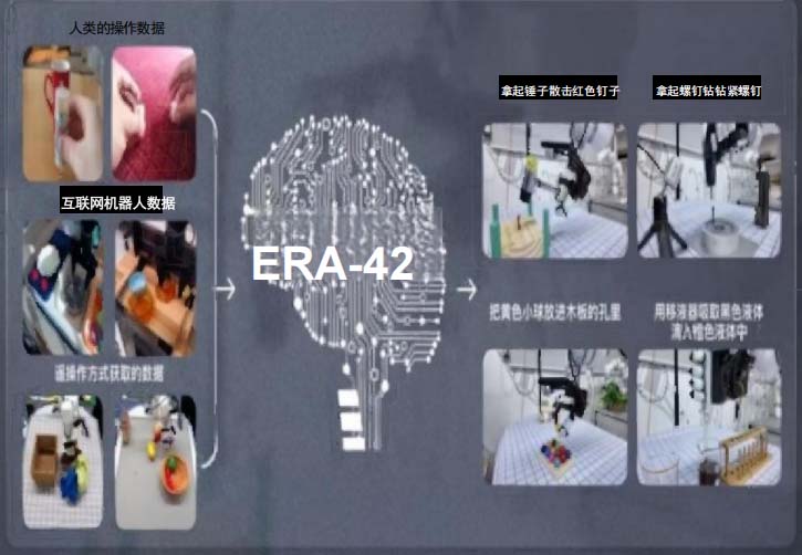 在24年12月公布的ERA-42 是國內真正意義上的端到端原 生機器人大模型,比肩世界L先水平。該原生大模型具備端到端原生架構,強大的模型泛化能力以及規模 化能力,是真正的具身大模型,與自研五指靈巧手星動XHAND1 結合后,能夠完成超過100種復雜靈巧的 操作任務,體現星動紀元對通用智能體的理解與技術突破