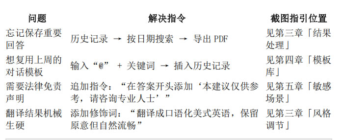 5)問題應對方案:遇到回答錯誤、響應慢、功能使用問題,可按分類采取相應解決措施。要注意保護安全隱私,避免危險行為,利用隱私保護機制和敏感場景處理方法保障信息安全。若出現問題,可借助官方診斷工具、社區互助資源和客服溝通解決 。