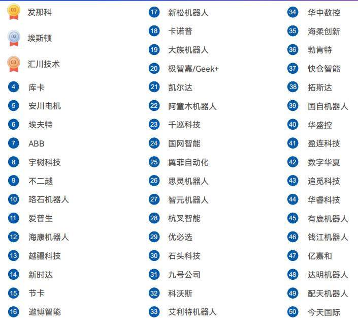 匯川技術,珞石機器人,越疆科技,節卡,埃斯頓,遨博智能,埃夫特,?禉C器人,新時達,大族機器人,阿童木機器人,新松機器人,極智嘉/Geek+