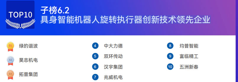 綠的諧波 有鹿機器人 銀河通用 樂聚機器人 逐際動力 星海圖 小鵬汽車 眾擎機器人 云深處 傅利葉智能 開普勒 靈寶CASBOT 星動紀元 智平方 因時機器人 強腦科技 穹徹智能 小雨智造 零次方機器人 千尋智能 加速進化 自變量機器人 靈巧智能 原力無限