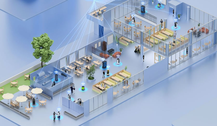 4. 全鏈路智能化 :從取號等位、迎賓領位到點 餐上菜、買單支付,服務機器人通過與餐飲 門店管理系統的互聯互通 ,構建起覆蓋" 排隊-點餐-上菜-支付-清潔" 的全流程智能服務閉環,助力全棧式智慧餐廳的打造。