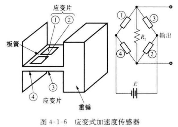 應變片加速度傳感器3:應變片加速度傳感器是由一個板簧支承重錘所構成 的振動系統。在板簧兩面分別貼兩個應變片,應變片受振動產生應變,其電阻值的 變化通過電橋電路的輸出電壓被檢測出來。
