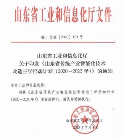 山東省傳統產業智能化技術改造三年行動計劃(2020- 2022年)
