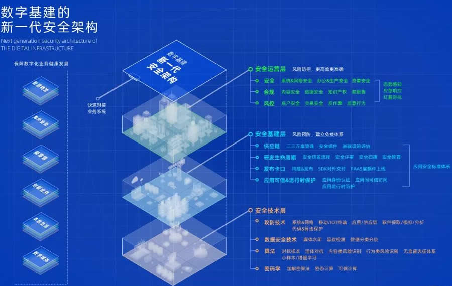 在“安全基建”概念中,新架構(gòu)整合阿里安全能力和運營經(jīng)驗,形成一套即插即用的標(biāo)準(zhǔn)化安全架構(gòu),為各類 App 和網(wǎng)站等數(shù)字經(jīng)濟實體的搭建過程建立標(biāo)準(zhǔn)化流程,幫助構(gòu)建數(shù)字化進程中的安全基礎(chǔ)設(shè)施。&