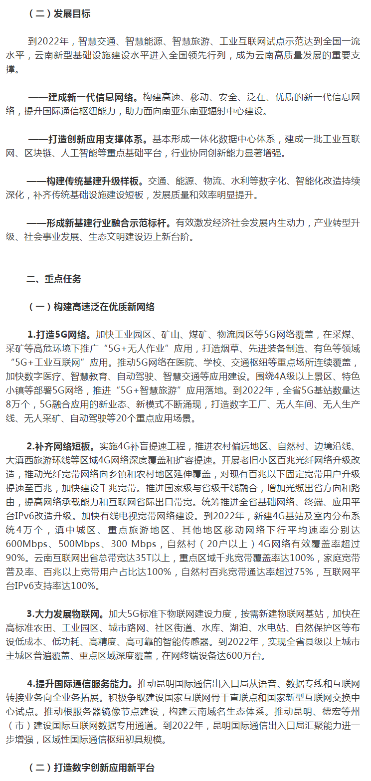 云南省推進新型基礎設施建設實施方案(2020-2022年)