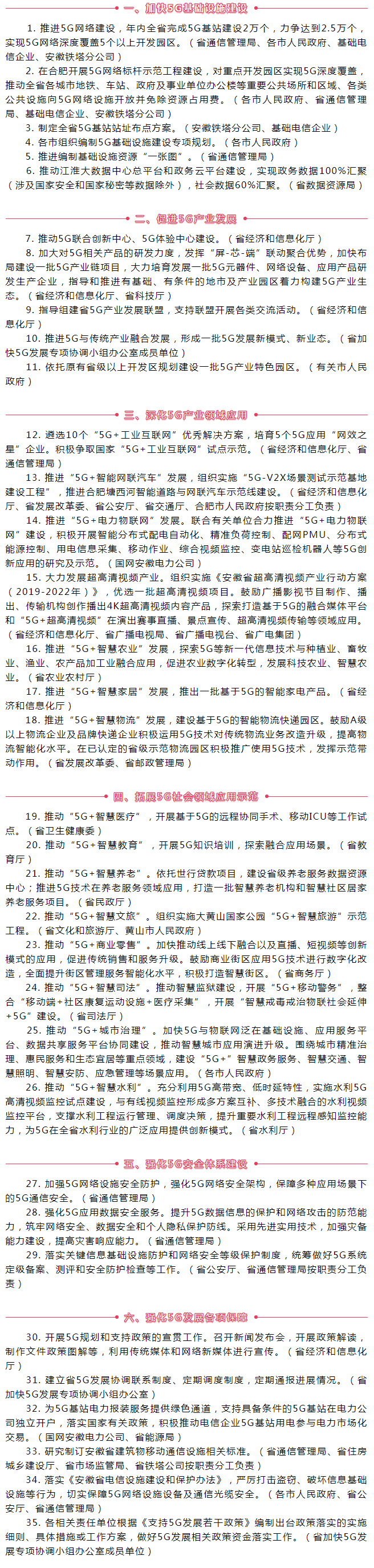 現(xiàn)將《2020年安徽省5G發(fā)展工作要點(diǎn)》印發(fā)你們,請結(jié)合職責(zé)分工,抓好落實。