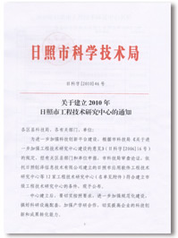 為進一步加強科技創新平臺建設,根據日照市科技局《關于進一步加強工程技術研究中心建設的意見》(日科字{2006}16號)的規定,經有關區縣部門和單位申報,經山東省日照市科技局審核論證,依托