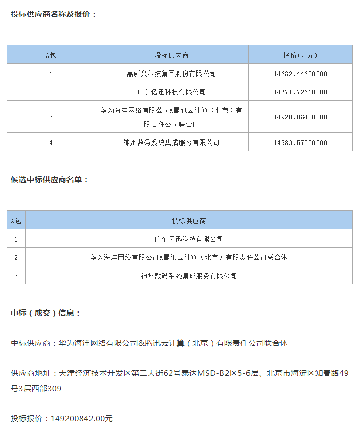9月14日消息,深圳智能網聯交通測試示范平臺(智能化工程)中標(成交)結果公示,中標供應商是華為海洋網絡有限公司&騰訊云計算(北京)有限責任公司聯合體,投標報價149200842元。