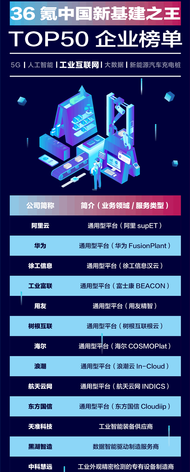36氪中國新基建之王「工業互聯網L域」TOP50企業