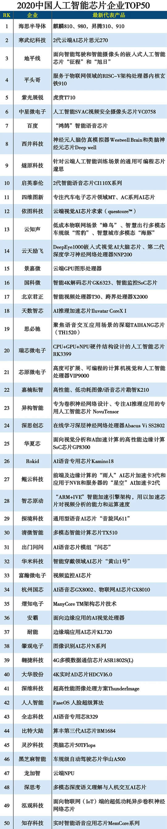 當前位置:首頁 > 機器人廠家 > 百強企業 > 2020中國人工智能芯片企業TOP50