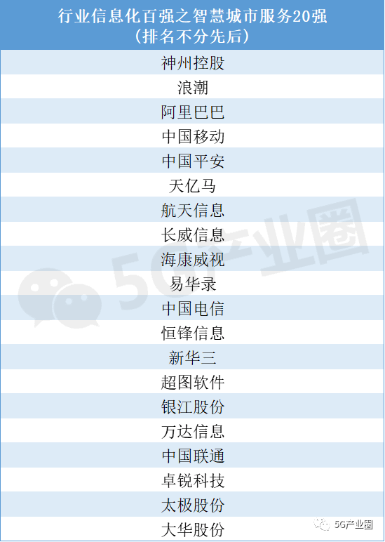 2020行業信息化競爭力之智慧城市服務20強