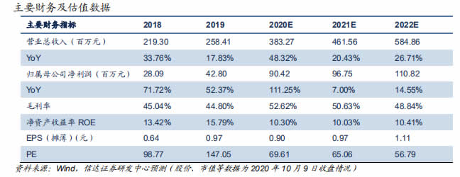 同時,公司對 2020 年前三季度進行了展望,考慮到國內外對于疫情防控的持續控制,額溫槍相關的G精度 ADC 產品等防疫相關物資的銷售仍有一定成長空間。預計公司單三季度營收預計為 0.91-1.21 億之間,同比增長 53.24%-103.98%;歸母凈利潤在 0.18 億元-0.23 億元之間,同比增長 30.23%-65.71%。