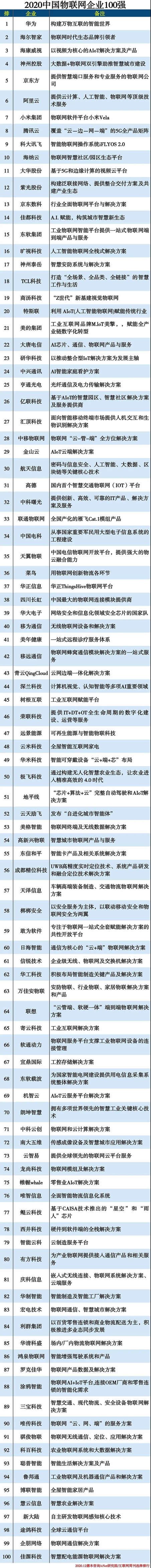 2020物聯網企業100強