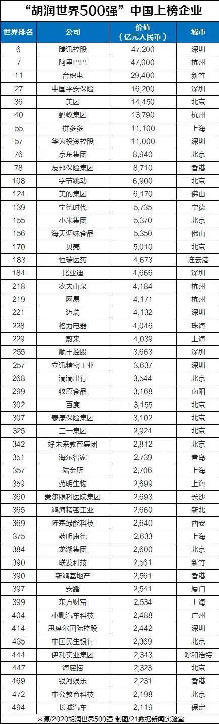當前位置:首頁 > 機器人廠家 > 百強企業 > 2020胡潤世界500強中國企業名單
