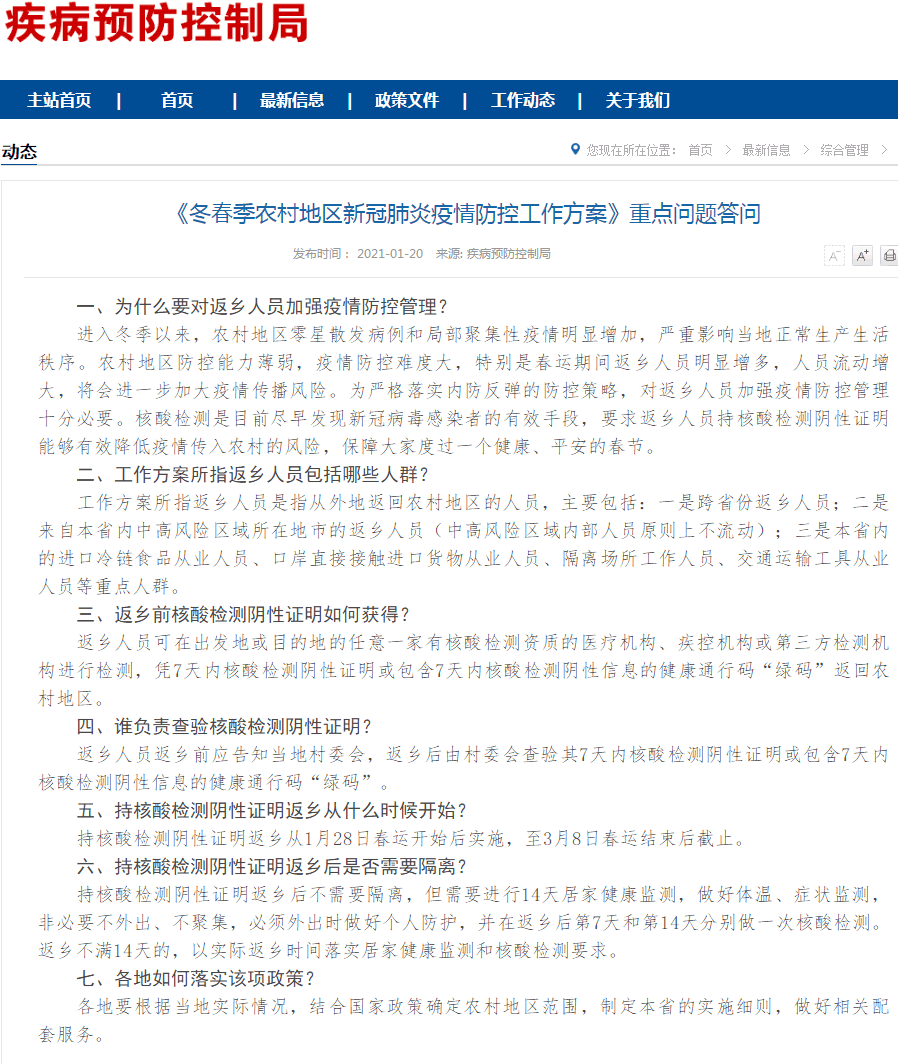 持核酸檢測(cè)陰性證明返鄉(xiāng)從1月28日春運(yùn)開始后實(shí)施,至3月8日春運(yùn)結(jié)束后截止。