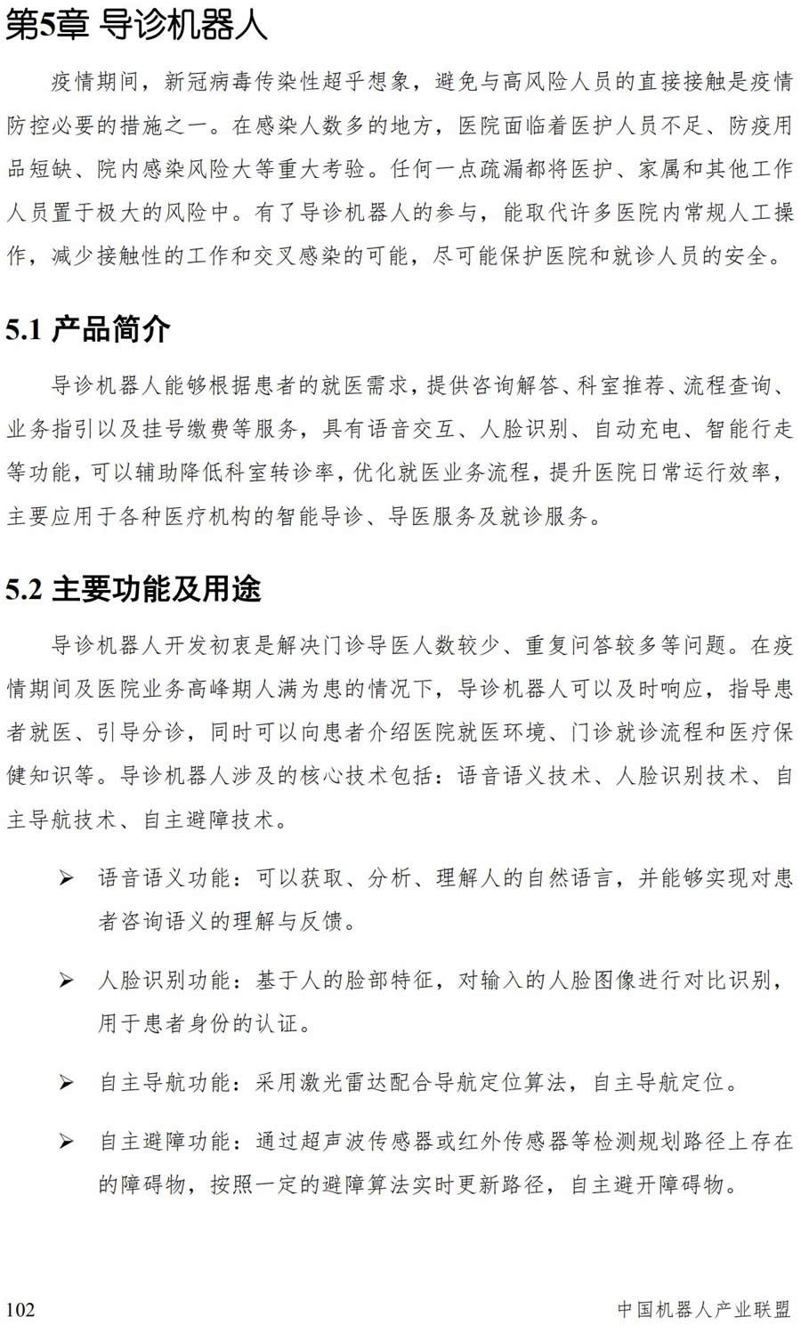 隨著自然語言處理、計算機視覺、多傳感器融合、大數據、AI 等技術的不斷發展,導診機器人的功能將會日趨完善,進一步協助各大醫院優化資源配比,提升醫療效率,真正滿足改善患者的就醫體驗的核心需求。例如:借助云平臺與專科醫療知識圖譜技術,機器人可與患者進行更加人性化、專業化的導診溝通,更準確地定位患者所問詢的病情;建立患者病例病史數據庫,為患者提供更加準確快速的分診服務,減少病人等待時間,優化醫院診療體驗;提升移動導航性能, 快速且實時更新動態場景地圖信息,做到零碰撞,無差錯地科室導引;連接醫療物聯網資源,實現跨區域導診信息共享,促進分級診療制度的推廣;具備典型病癥數據庫,通過檢測患者的體貌癥狀,判斷患者病癥傳染性;提G語音交互的抗環境干擾能力和準確性,可以更好的在醫院等環境嘈雜的應用場景下,為患者提供準確的導醫服務。