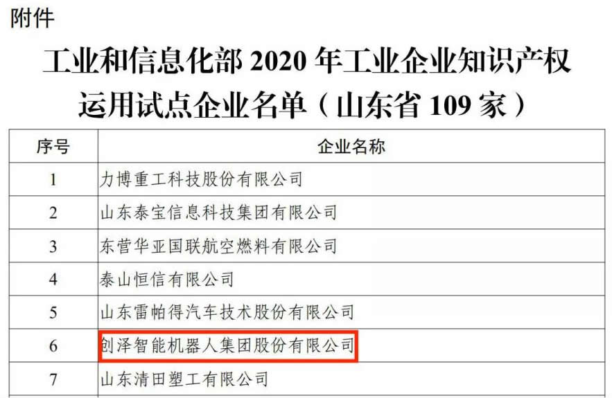 創(chuàng)澤集團入選工信部2020年工業(yè)企業(yè)知識產(chǎn)權(quán)運用試點企業(yè)名單 |