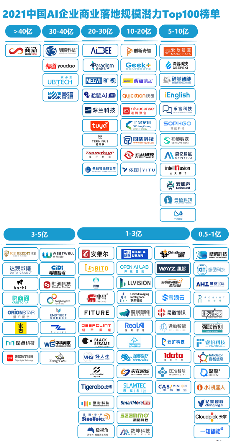 特斯聯,云天勵飛,安維爾,曠視,云知聲,滴普科技,商湯科技,明略科技,云叢科技,睿凡科技,深蘭科技,依圖,模點科技,元知智能研究所