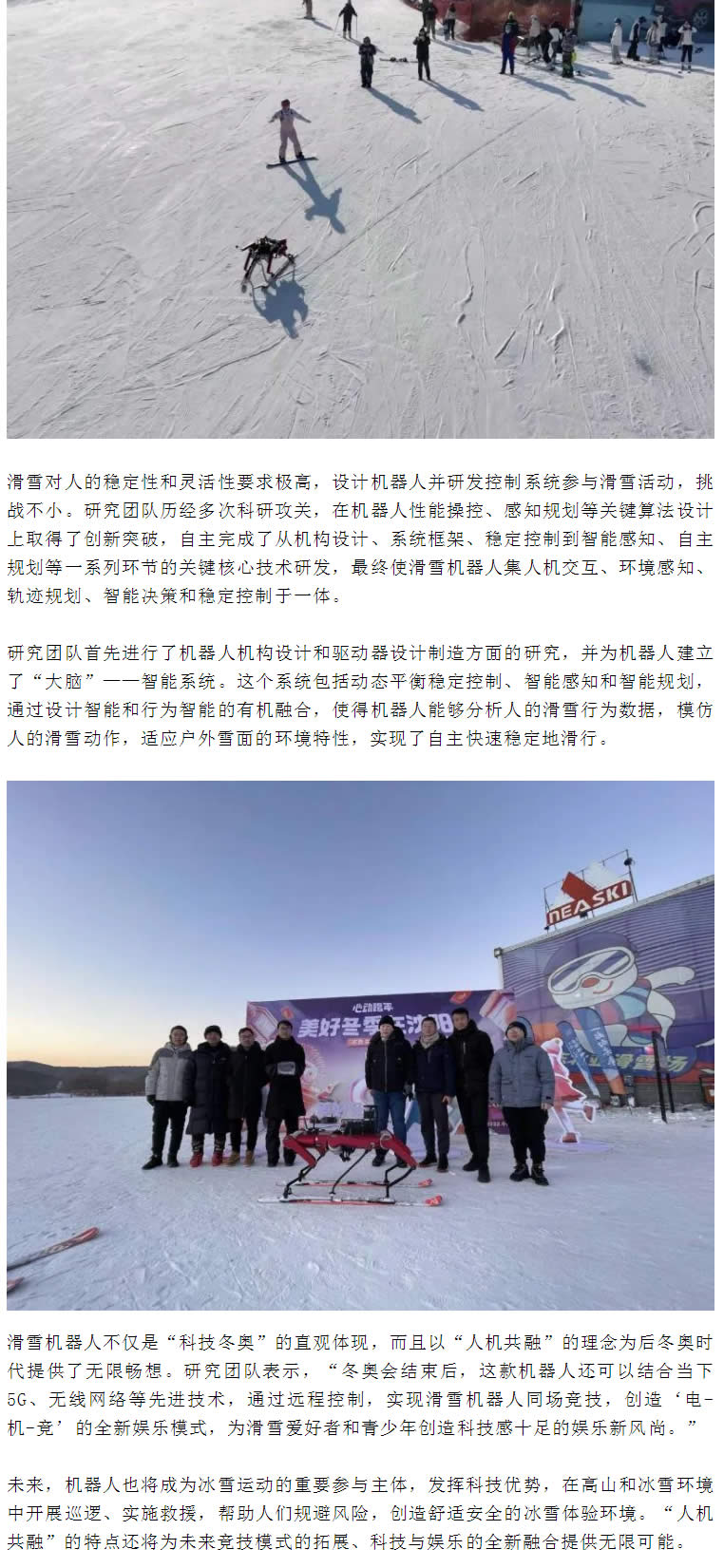 這款滑雪機器人是在“科技冬奧”的號召下,由上海交通大學G峰教授L銜,上海交通大學機械與動力工程學院和電子信息與電氣工程學院組成的足式機器人研究團隊研制,獲得了科技部國家重點研發(fā)計劃“科技冬奧”重點專項支持。