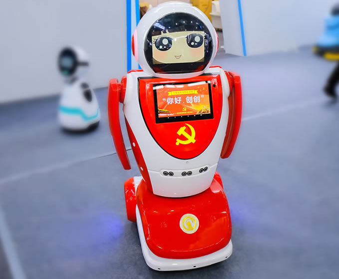 智能對話機器人"創創”智能服務機器人采用"大腦+小腦"結構設計理念,擁有基于"互聯網+ "思想的機器人支撐配置平臺,集聽覺、視覺、觸覺于一體的個性化情感智能服務機器人。產品通過了國家機器人檢測與評定中心EMC和安全雙資質認證