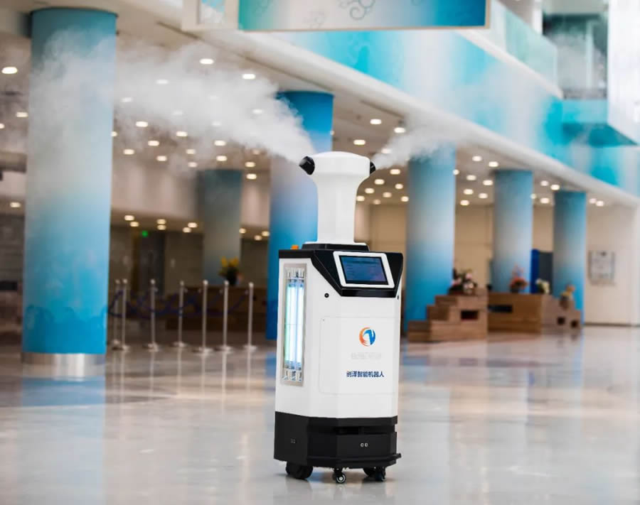 創澤智能消毒機器人在醫院門診大廳,發熱門診,住院部等多個場景廣泛應用,為疫情防控做出了突出貢獻,入選2020年人工智能案例TOP100