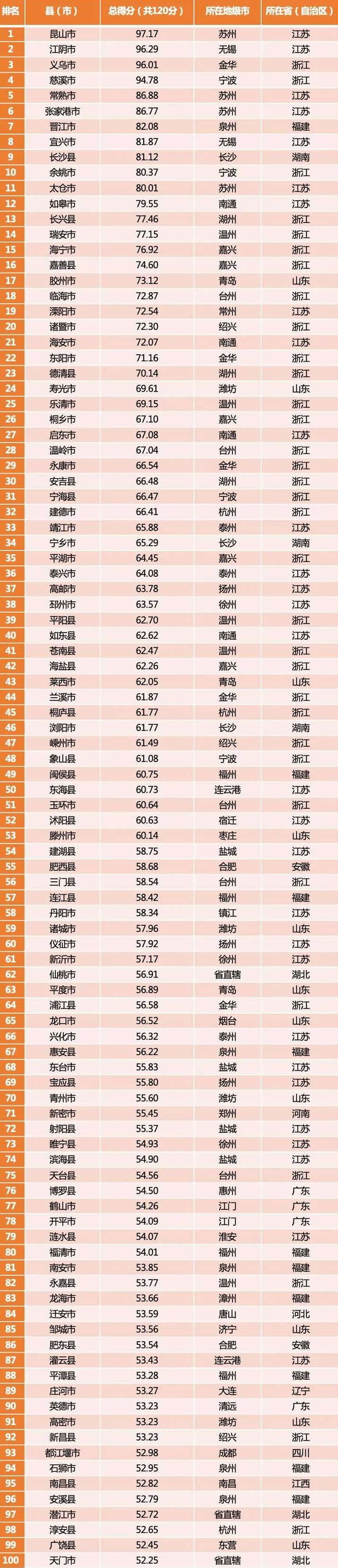眾誠智庫日前聯合發布《2021年中國投資潛力百強縣》榜單。榜單顯示,2021年,我國投資潛力百強縣呈現東強西弱的特點。百強縣中,東部共有88個縣(市)入圍,占到投資潛力百強縣的近9成,是投資潛力強縣的重要聚集地;中部地區共有10個縣(市)入圍,分別分布于湖北、湖南、安徽等省份,占比共計10%;西部和東北地區各有1個縣(市)入圍百強縣,分別是成都市的都江堰市和大連市的莊河市。