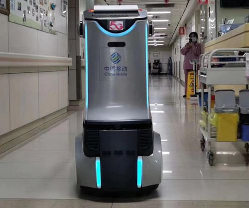 達闥科技公司和中國移動聯(lián)合研發(fā)5G云端智能運輸機器人已在浙大二醫(yī)院應(yīng)用,可替代醫(yī)護人員為患者提供藥品,機器人身上的分層儲物柜,可實現(xiàn)一次多單的配送。