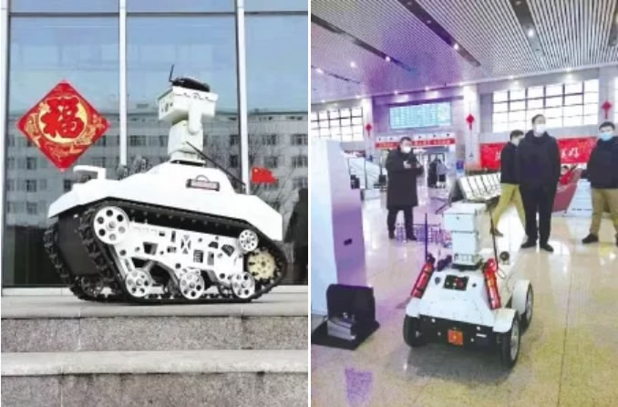 該機型利用360度無死角、5G通訊、相控陣雷達、大數據分析和深度學習等智能算法,實現大范圍內的人員遠紅外溫度探測和巡檢提醒預警,可用于機場、學校、廠區、醫院等人口聚集和流動大的場所,探測密集人群個體溫度、識別是否佩戴口罩、自動噴灑消毒劑、智能疏散,并協助進行疫情進展通報、防控宣傳和突發狀況處置等工作,在有效節約人力、提G工作效率的同時,降低檢測人員的接觸感染風險。