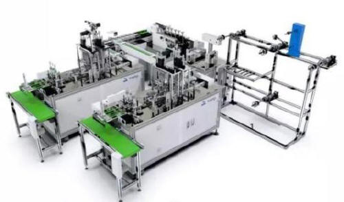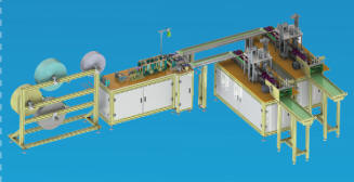 研發(fā)全自動平面型醫(yī)用外科口罩生產(chǎn)線及全自動折疊型醫(yī)用口罩生產(chǎn)線,實現(xiàn)卷材上料、折疊壓合、鼻梁筋上料、口罩成型、口罩切斷、耳帶上料及焊接、成品下料等工藝的全自動化生產(chǎn)。