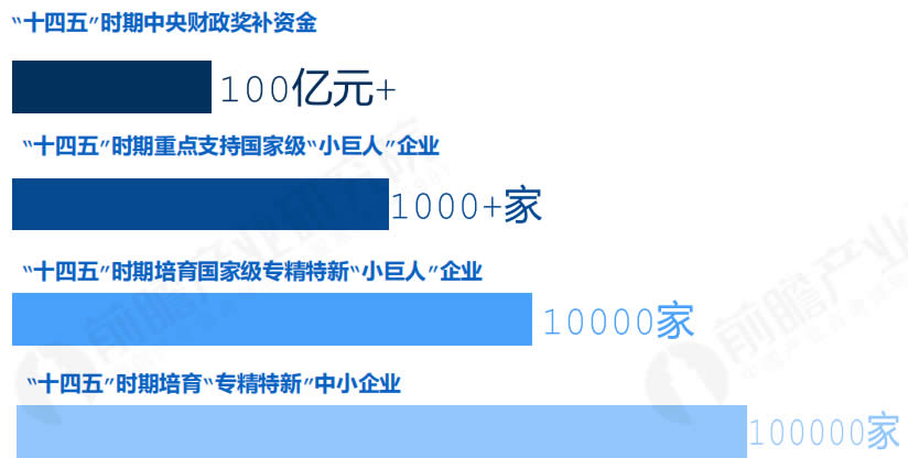 《關于支持“專精特新”中小企業G質量發展的通知》指出:2021-2025年,財政將累計安排100億元以上獎補資金,分三批(每批不 超過三年)重點支持1000余家專精特新“小巨人”企業G質量發展,帶動1萬家左右中小企業成長為專精特新“小巨人”企業。 《“十四五”促進中小企業發展規劃》則明確了“百十萬千”的培育目標,“十四五”時期我國將推動形成一百萬家創新型中小企業、十萬家 “專精特新”中小企業、一萬家專精特新“小巨人”企業。
