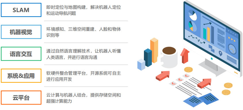 4 云平臺。將云計(jì)算與機(jī)器人結(jié)合,可以為機(jī)器人提供更大的信息存儲空間和