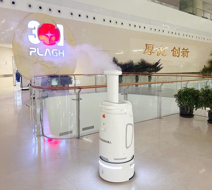 在中國人民解放軍總醫(yī)院D一醫(yī)學(xué)中心的門診大廳里,創(chuàng)澤智能消毒機(jī)器人頭D噴霧在醫(yī)院門診大廳走來走去進(jìn)行全域消毒殺菌,實(shí)現(xiàn)消毒效果量化管理