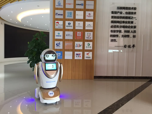 智能迎賓機器人正在工作區域待命,正在等待您的到來。