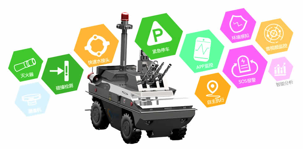 智能安防機器人集音視頻數據采集、消防和安防、視覺系統、無人駕駛技術于一體,搭載360°紅外攝像、超聲波雷達、雙目視覺攝像頭、網槍、催淚瓦斯噴射器、水炮、干粉滅火器等設備,基于輪式小車實現全天候自動巡邏,360度聲音圖像同步回傳,自動躲避行人及障礙物。支持快速行走功能,當發生異常時,可實現快速部署及現場支援,為用戶提供智能安全服務,是社區、學校 等公共場所人民群眾的保護神!